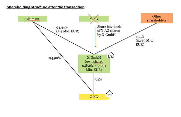 With regard to the treatment at the level of the (former) shareholder transferring the shares to the company, it is settled that this constitutes a disposal that may fall within the scope of Sec. 17 of the Income Tax Act ("EStG"). The case of a partition in kind of commercial partnerships has likewise been decided (BFH, rulings of 21 August 2025 — IV R 15/22 and IV R 16/22). Where own shares are acquired from a shareholder above their market value, or disposed of to a shareholder below market value, this may additionally trigger a hidden profit distribution at shareholder level (BFH, ruling of 13 May 2025 — VIII B 33/24; see also Federal Ministry of Finance ("BMF") circular of 27 November 2013 — IV C 2 – S 2742/07/10009).