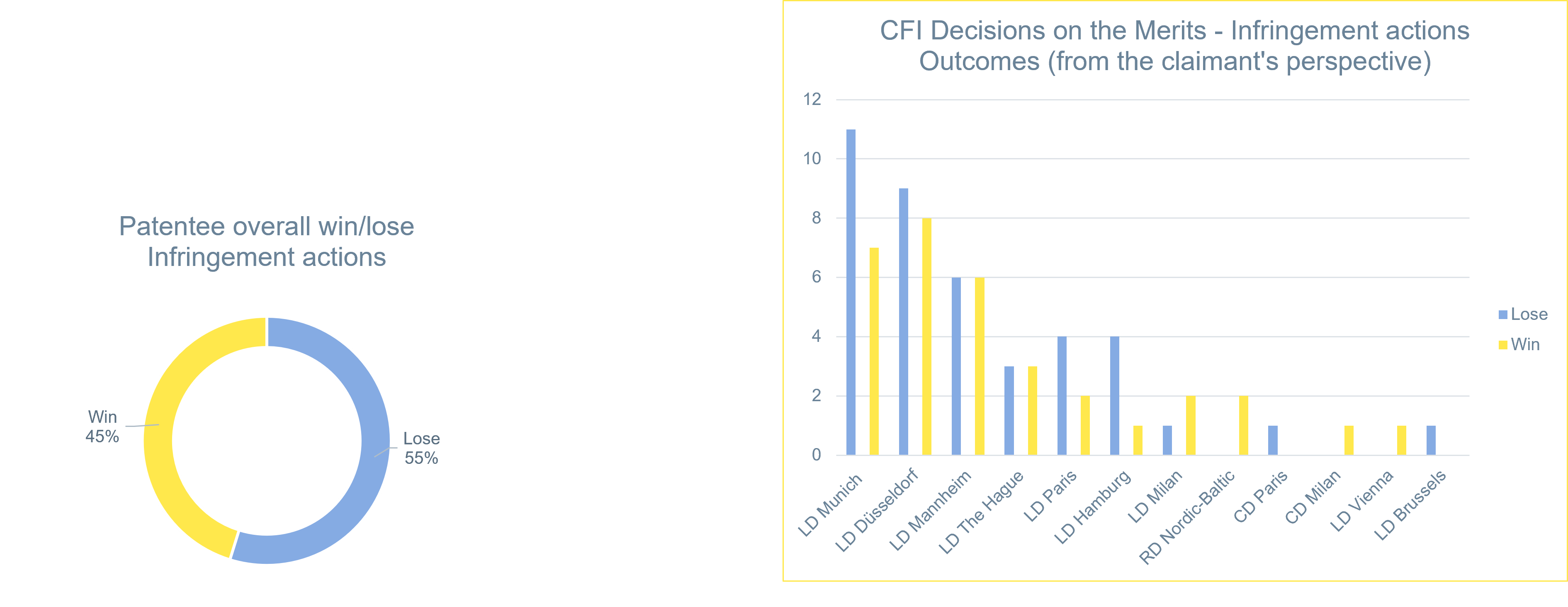 This graphic shows the outcomes of infringement actions by win/lose and by Division.