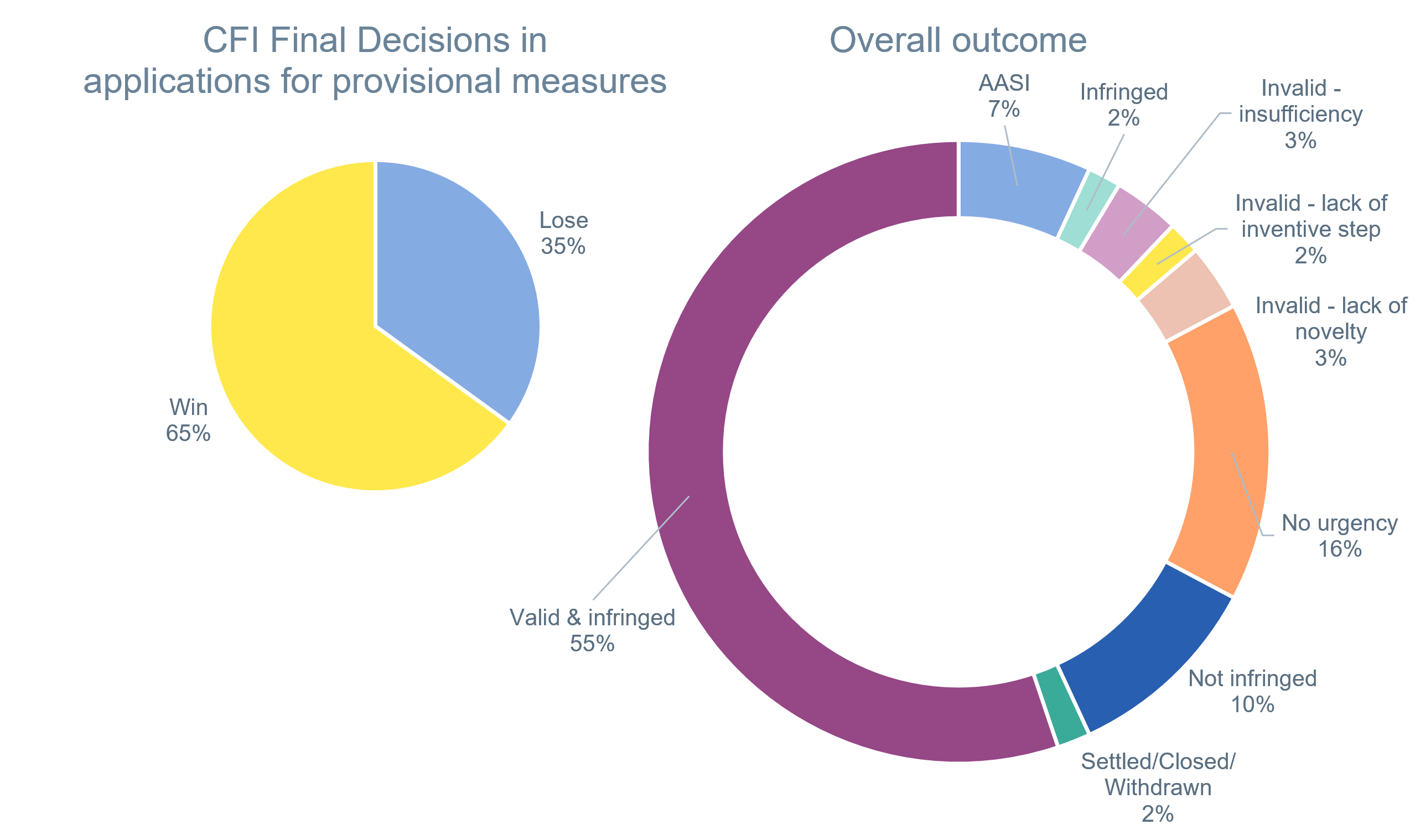 This graphic shows the win/lose breakdown and outcomes for applications for provisional measures.