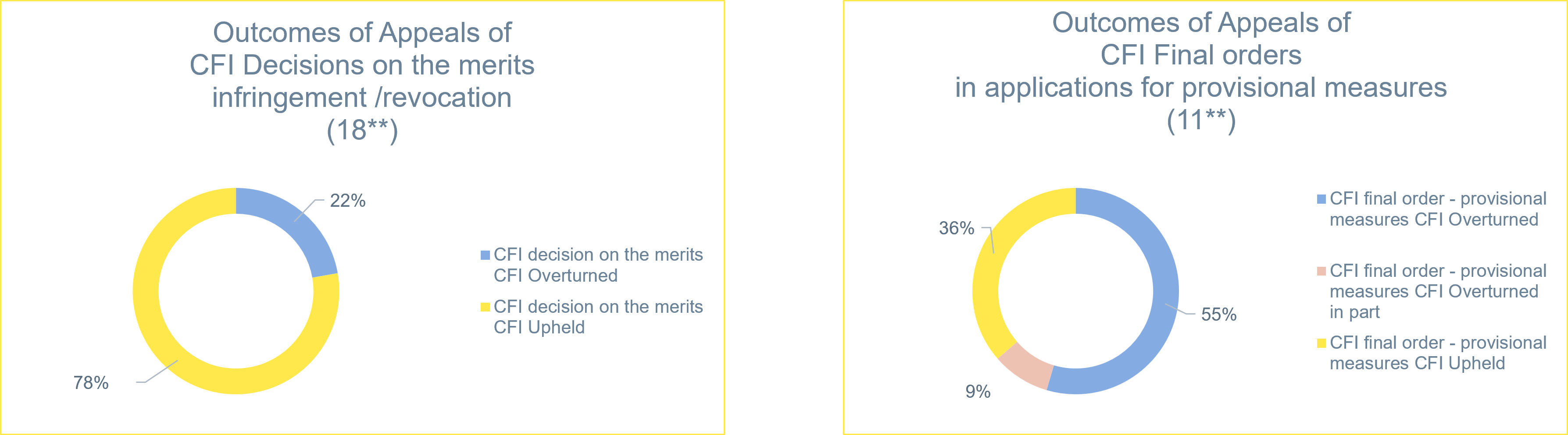 For appeals relating to decisions on the merits[2]: 78% of CFI decisions have been upheld (18 decisions*).